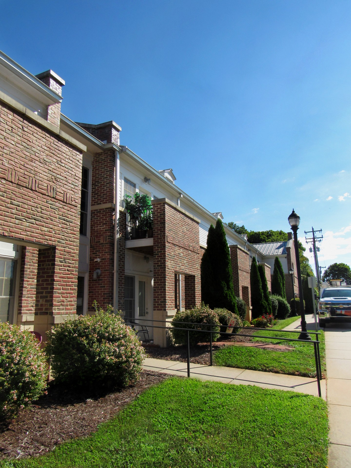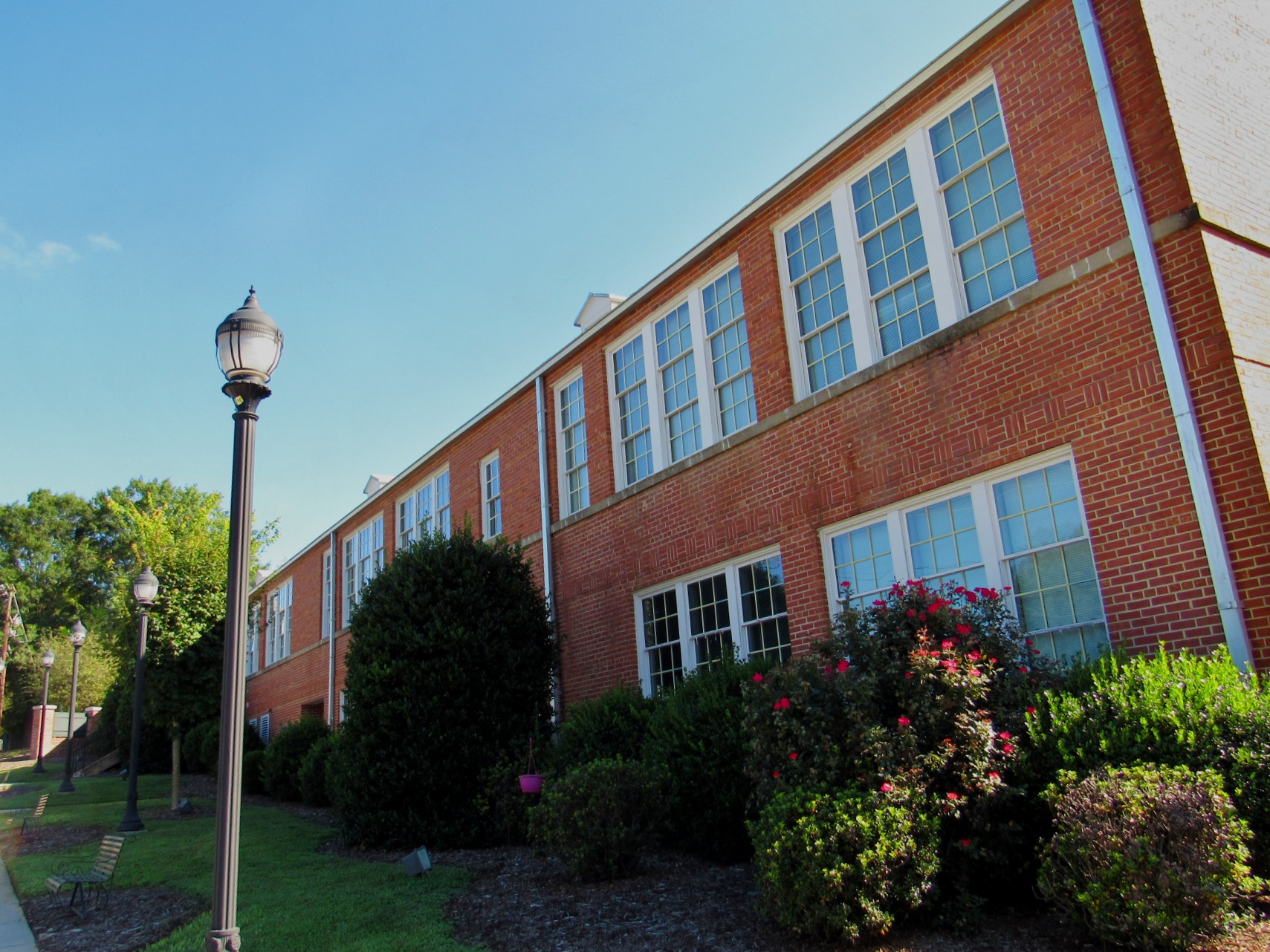 This development involves the rehabilitation of a historic elementary school in the town of Wilkesboro providing affordable housing for the elderly and disabled. The site is listed on the National Register of Historic Places. The school is completely renewed to include 9 senior apartments, a community meeting room with kitchen, craft room, computer room, library and office space. A new construction building behind the school echoing historic features and containing 32 additional dwelling units has been added. Laundry facilities are in the historic building as well as space for tenant supplied washers and dryers within each dwelling unit. Wide hallways, tall ceilings and big windows remind the visitor of great public spaces of the past.